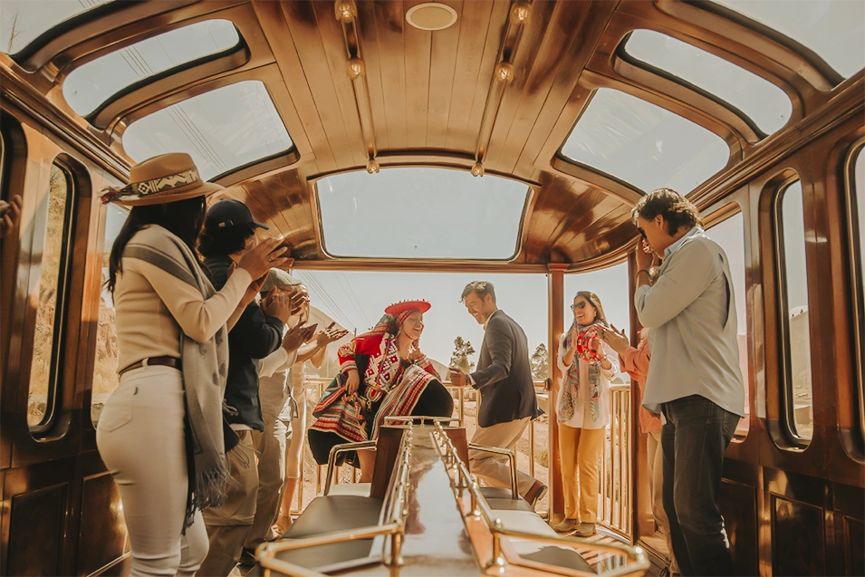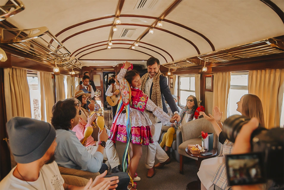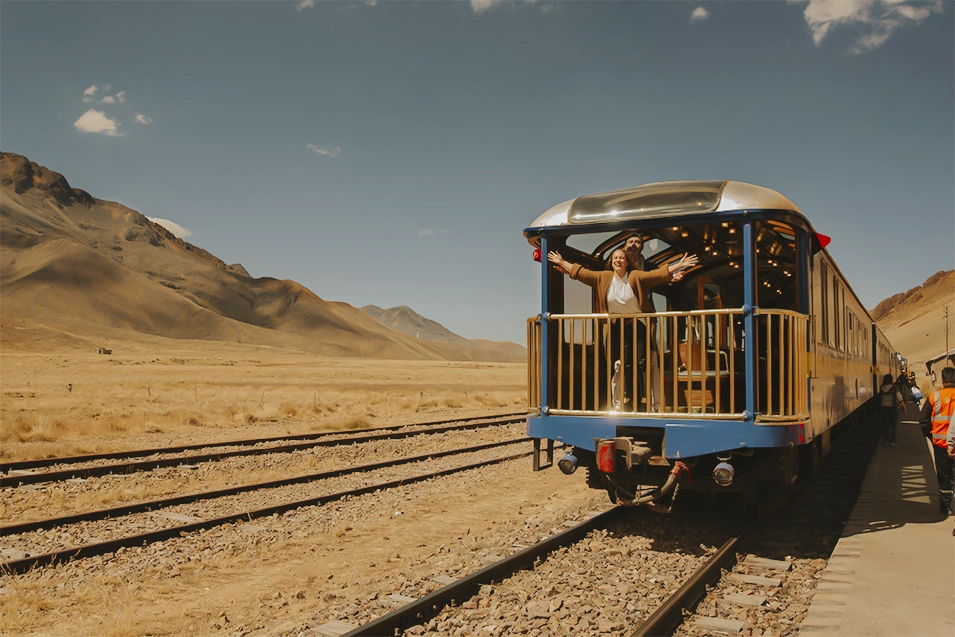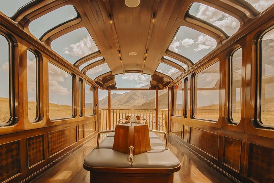 Your Andean plains Peru itinerary begins in Arequipa, a White city built from volcanic stone from the nearby volcanoes. As you take the luxury train, the pace of travel changes immediately. There is no rushing around in this part of the world. The highland landscapes open up slowly, and so do you as you gain in altitude, the world slows down. As you get settled into your private cabin, the train glides across the Andean plains. The wide window frames offer views of grazing vicuñas, distant volcanoes, and skies that seem impossibly large. The shared spaces onthe train invite quiet conversation, observation, and reflection as all good adventures do. As evening arrives, you will be served a delicious dinner of Andean ingredients prepared with care, honoring highland flavors. Later, the bar car becomes a place of warmth and Peruvian folklore, where travelers exchange impressions as the train moves steadily toward Lake Titicaca. By nightfall, you will fall asleep, gently rocked by the movement of the train, the altitude, and the silence.