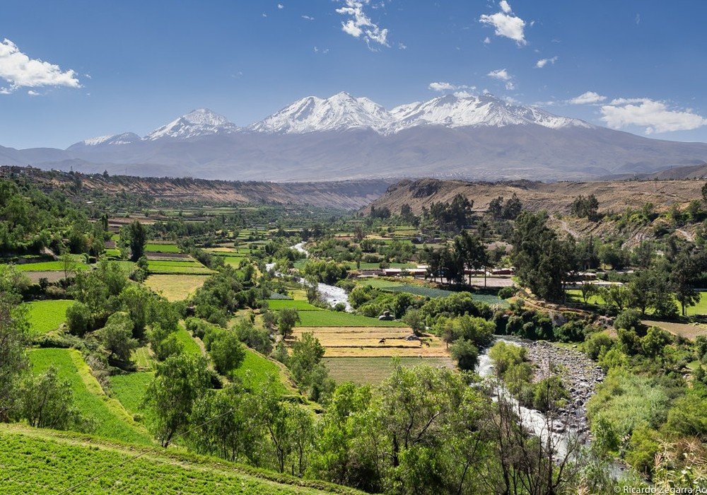 The Arequipa Countryside is a highly attractive area surrounded by pre-Incan terraces, the Chili River, and the three volcanoes: Misti, Chachani, and Pichu Pichu. On our Campiña excursion, we will visit a colonial rural mill built in 1621 and explore traditional villages like Sabandía and Paucarpata. We will walk through the rooms of the Founder's House and enjoy beautiful panoramic views of the Chili River and the agricultural areas. We will also witness the stunning volcanoes from the historic Iron Bridge, built in 1871, from the Sachaca Viewpoint.