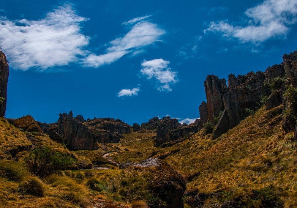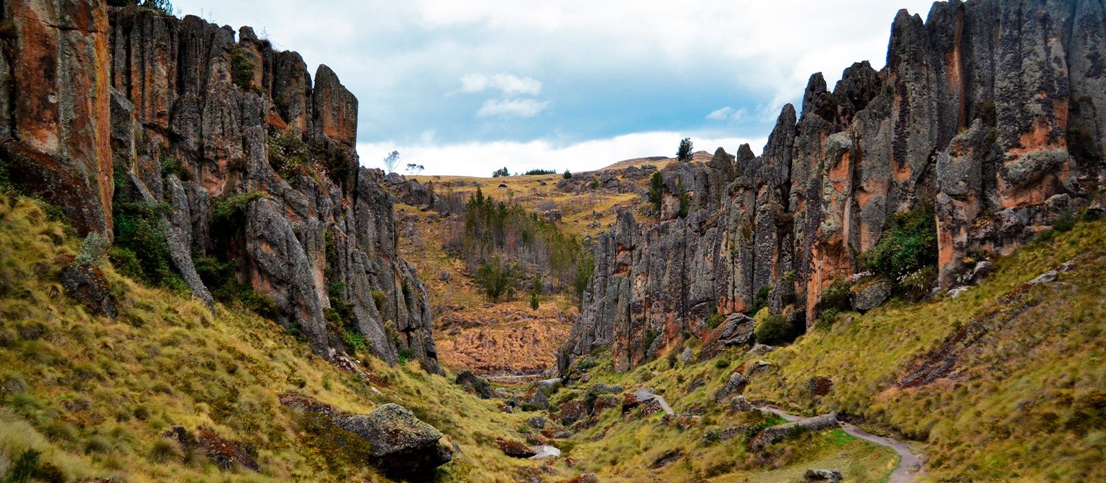 The Archaeological Complex of Cumbemayo sits at an altitude of 3,500 meters above sea level and is about 20 km by road to the southwest of Cajamarca. This fascinating site includes a number of intriguing elements, including an ancient aqueduct, petroglyphs, and massive volcanic pillars.