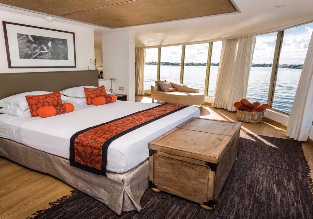 Once we arrive in Nauta, you’ll have a VIP greeting at the private port where the beautiful Delfin III river cruise ship will be waiting. Once you’re on board, our friendly and highly qualified staff will show you to your suite. It will be immediately obvious that this is a truly luxurious riverboat experience, with orthopedic mattresses, 100% cotton sheets, 100% natural latex pillows, cotton robes, air conditioning and a private bathroom with a hot shower.