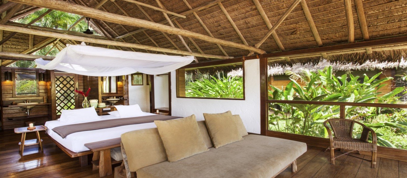 Inkaterra Hacienda Concepción is a pristine yet accessible jungle lodge with 25 luxury private cabins. Built in a former cacao and rubber plantation, this magnificent lodge is located on the banks of the Madre de Dios River, right on the doorstep of the Tambopata National Reserve. From this luxurious base in the heart of the Amazon rainforest, you can explore the surrounding jungle and venture into the reserve, which is one of the most biodiverse regions on Earth.