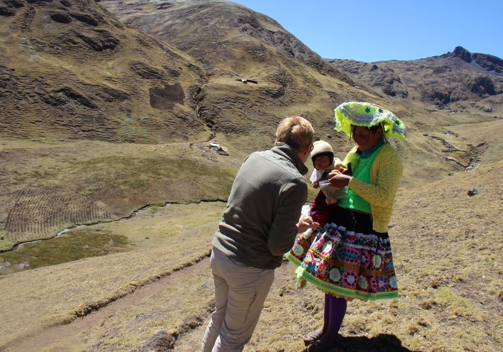 From Lares, we’ll head off on foot towards Huacawasi, a colorful little town of adobe houses and roaming llamas, located at about 3,600 m (11,811 ft) above sea level. It will take us about four or five hours to trek to Huacawasi, where we’ll have dinner and camp for the night. Huacawasi is a traditional weaving community, and you’ll be able to spend some time watching the local weavers at work, and maybe have a go yourself. These Traditional weaving demonstrations on the Lares Trek are a highlight of the Lares Trek and many of the authentic products in Cusco come from these native weaving communities, hidden in The Andes. Why not buy the products directly from the producers in these local villages? You will be contributing to Lares Trek sustainable travel practices and probably get a better price buying direct from the producer!