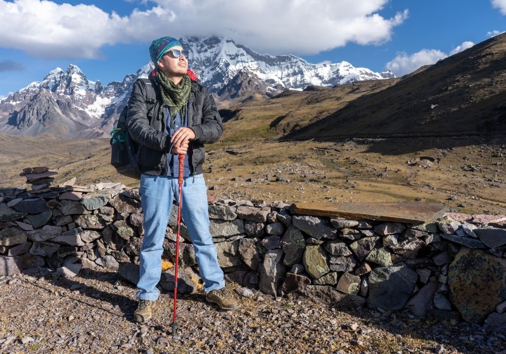 We’ll start this day of The Lares trek early in the morning with a hearty breakfast, to get our energy levels up for what is probably the toughest day of our Lares trek to Machu Picchu. Setting off, it’s a steep uphill climb to a mountain pass at about 4,500 meters above sea level – the highest point reached on our Lares trek. The view from up here is sublime, looking out across the surrounding mountains and down to the beautiful Aruraycocha Lake below us. We’ll then head downhill towards the lake, stopping off to admire its clear glacial waters as we enjoy Trekking off the tourist path in Peru.