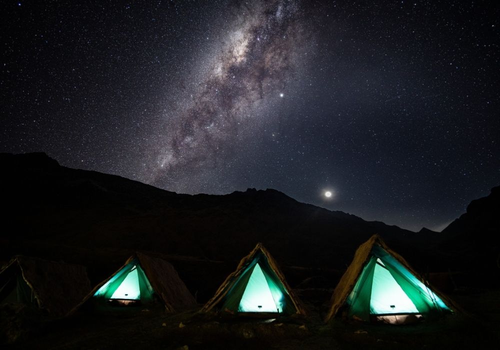 Here our chefs will prepare our breakfast before starting our Salkantay Trek. After enjoying our breakfast and receiving our snacks, we will walk approximately 4 hours, including a visit to the Humantay lagoon, until we reach our Salkantaypampa campsite. This is where our chef awaits us with a delightful dinner prepared with local ingredients. We’ll set up camp and later have dinner, surrounded by mesmerizing scenery.