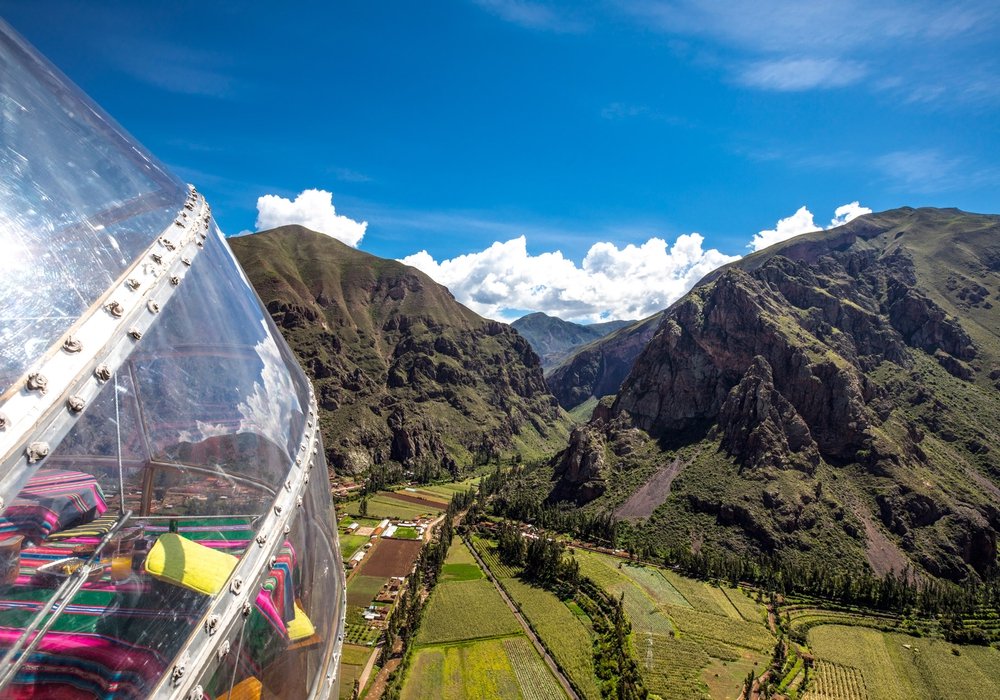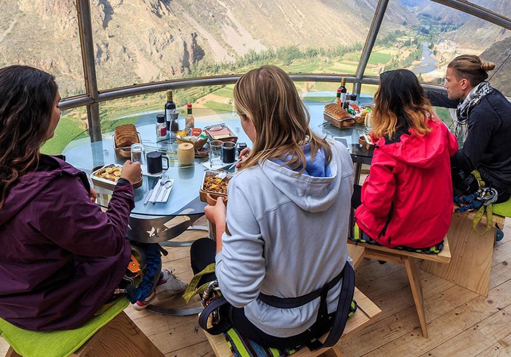 Once you’ve made it to the capsules, you’ll be shown to the transparent, bubble-like dining suite where you can have a well-deserved rest while enjoying the stunning views along the marvelous Sacred Valley of the Incas below.
